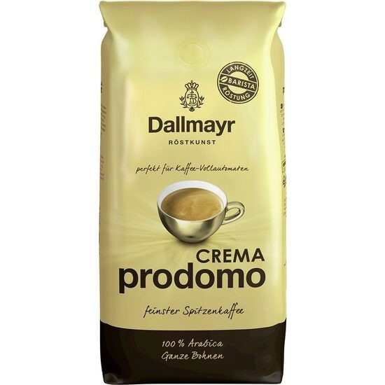 Dallmayr Crema Prodomo cafea boabe 1kg este un amestec premium din cele mai fine boabe de cafea Arabica, provenite din cele mai bune regiuni de cultivare din zone muntoase din lume.