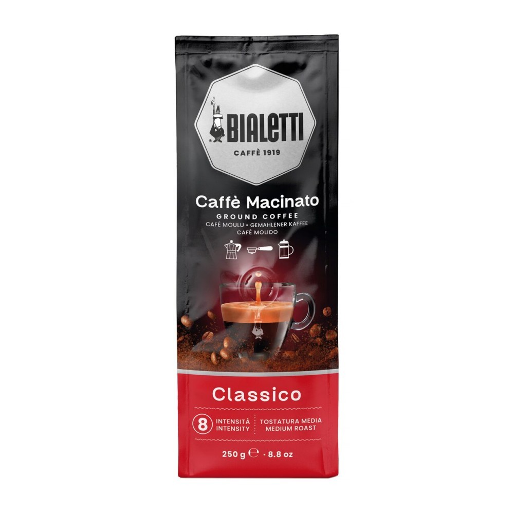 Cafeaua macinata Bialetti Classico 250g este o cafea italiană măcinată prăjită intens pentru moka, espressoare și french press.