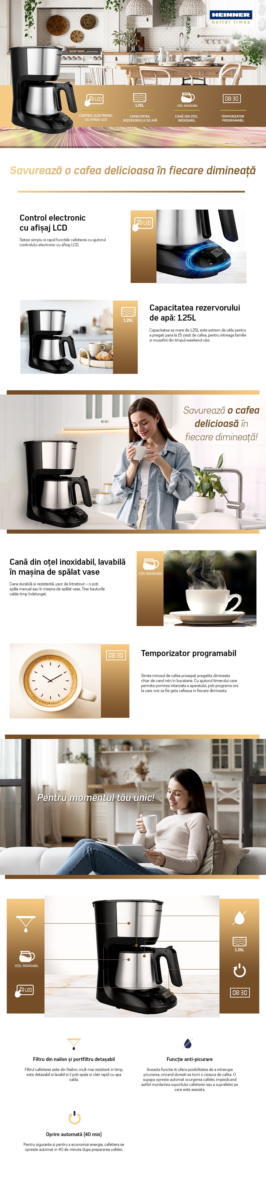 - Capacitate cafetiera: 1.25L
