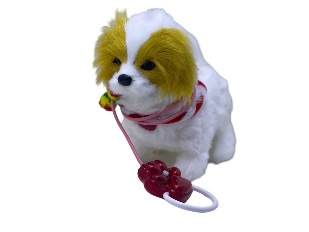Caine alb interactiv cu telecomanda, latra, merge, misca coada, topaie