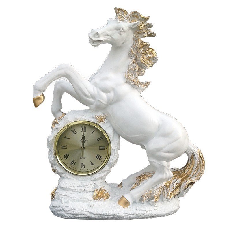 Statueta reprezentand un cal din rasina cu ceas din plastic.