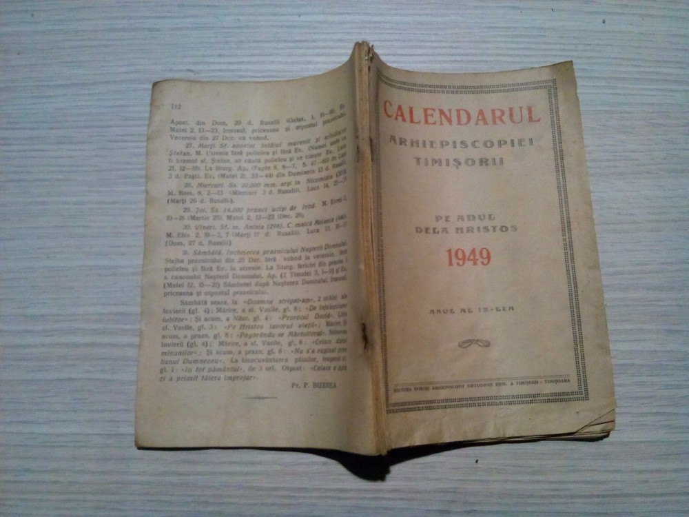 CALENDARUL ARHIEPISCOPIEI TIMISORII pe Anul dela Hristos 1949 - 1949, 112 p.