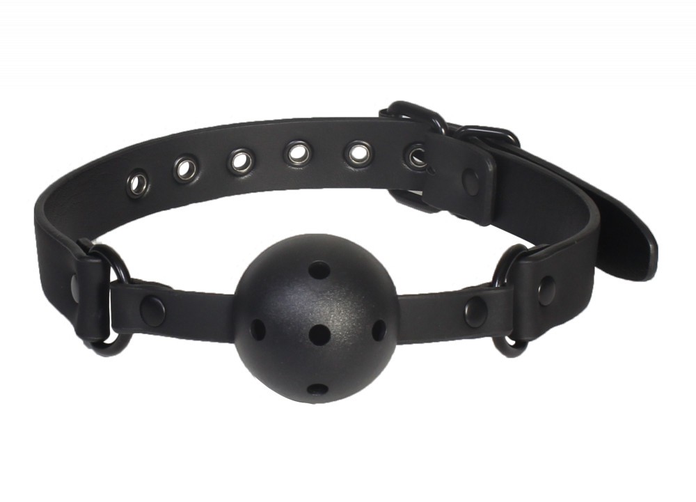Calus cu design clasic compus din curea prevazuta cu catarama metalica pentru prindere si reglare si bila perforata din silicon ce faciliteaza respiratia. Bila are un diametru de 4.7cm. | Material: ABS + PVC | Diametru: 4.5 cm | Culoare: Negru