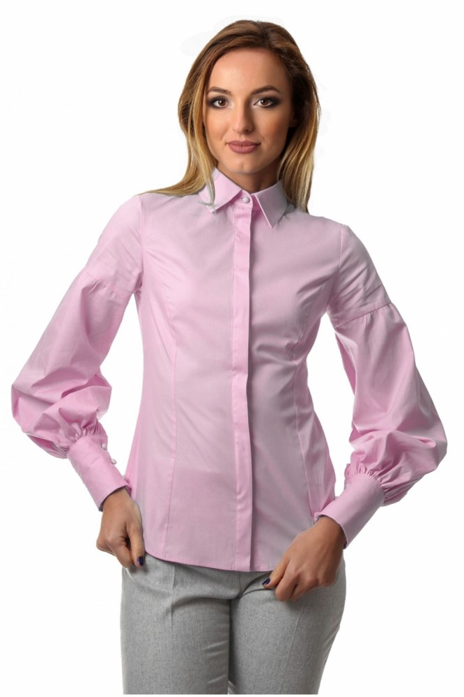 Camasa dama office roz cu maneci bufante si fenta dubla