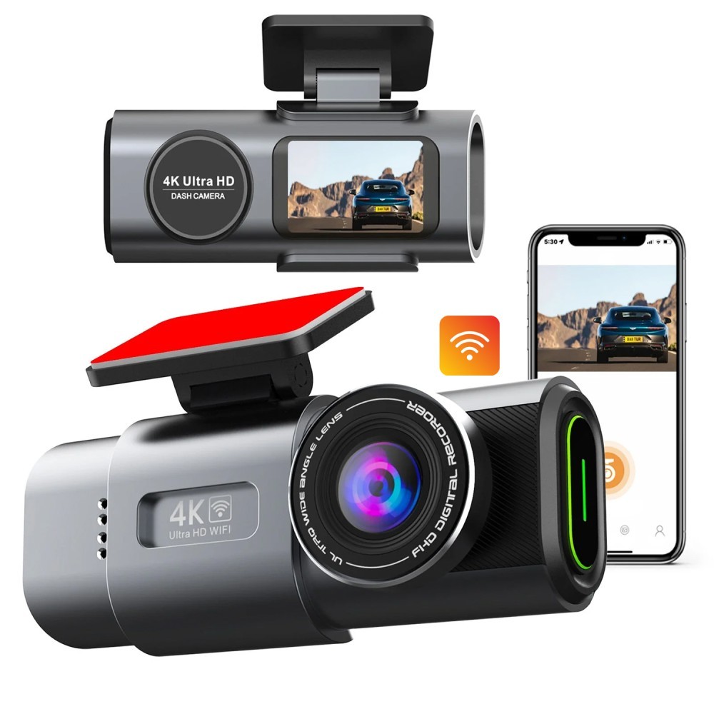 Camera Auto DVR 4K Fata Spate WiFi, Senzor WDR Vedere Nocturna, G-Sensor, Mod Parking 24H, Unghi 170°, Camera Marsarier Inclus, Inregistrare Bucla, Ap