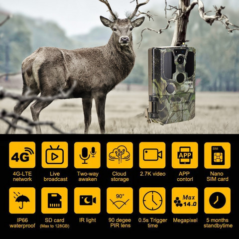 Camera de vanatoare WISTINO 4G 14 MP, rezolutie video 2.7 K, 0.4s trigger, PIR 20 m, unghi 120, 38 leduri 940nm, aplicatie telefon UCON