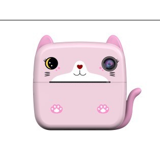 Camera Instantanee pentru Copii, Flippy, cu Functie de Printare, cablu USB-C, Bluetooth, compatibil iOS/Android, Imprimare APP, Model Pisica, Roz