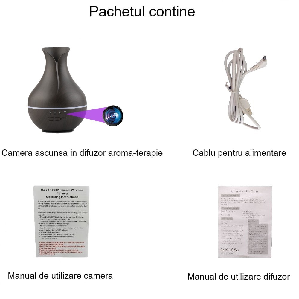 Camera Spion Wi-Fi, TSS-ODN4 Ascunsa in difuzor de Aroma Terapie Functional, 5MP, Inregistrare Audio-Video, Activare la Miscare, Slot Card