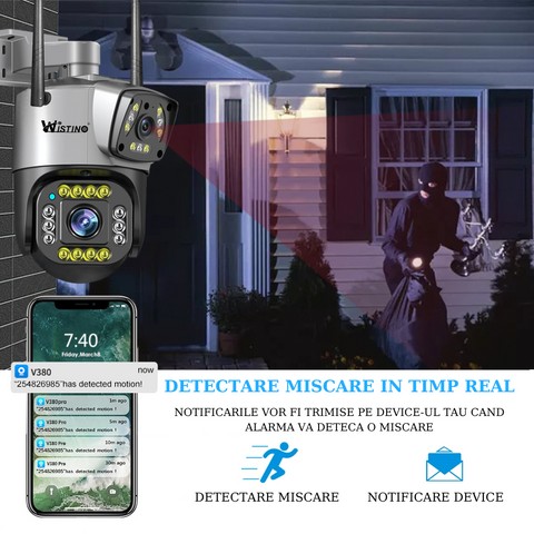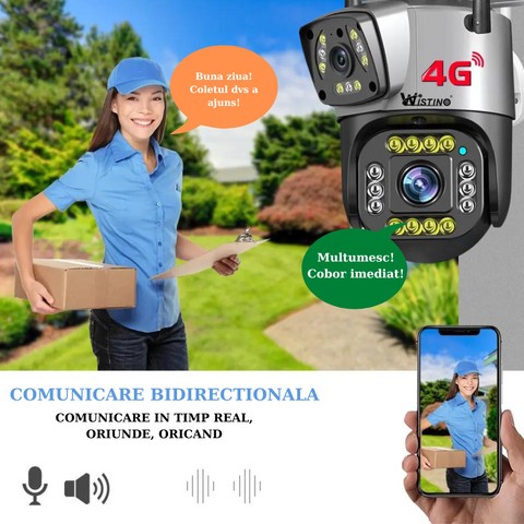 Camera supraveghere 4G Cartela SIM 4K, 8MP, Control din aplicatie, 2 lentile, Urmarire automata, Rezistenta la apa IP66