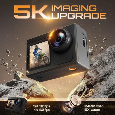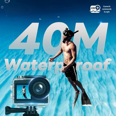 Pregătește-te să surprinzi fiecare clipă a aventurilor tale cu o cameră sport profesională! Cu rezoluție 5K/30fps, funcții inteligente și design rezistent, este companionul perfect pentru sporturi extreme, călătorii, activități subacvatice sau vloguri.