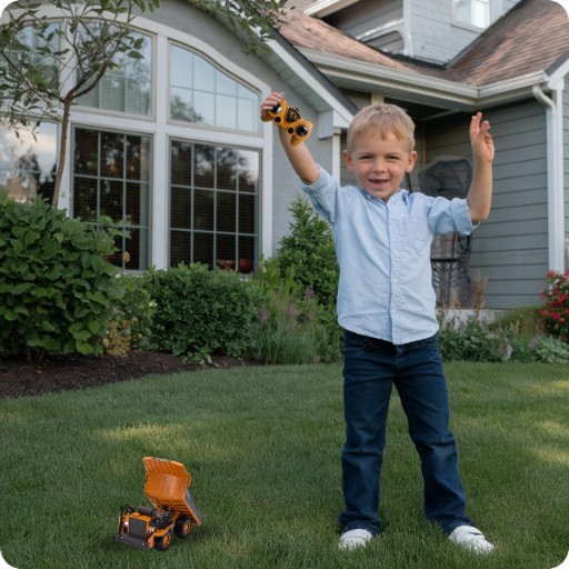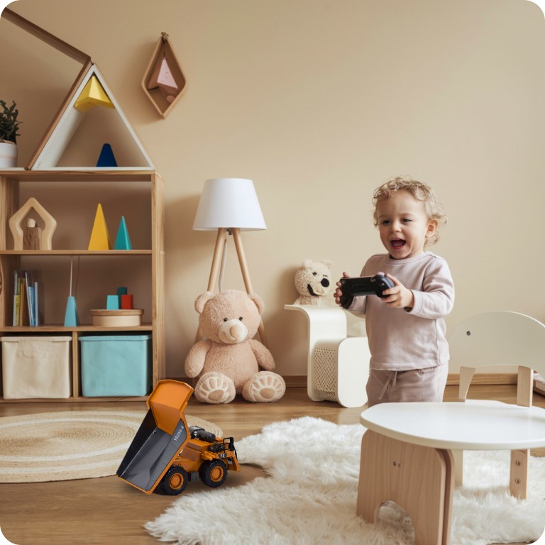 - Da, tractorul este potrivit pentru joacă atât în interior, cât și în exterior, cu condiția ca terenul să fie relativ plat.