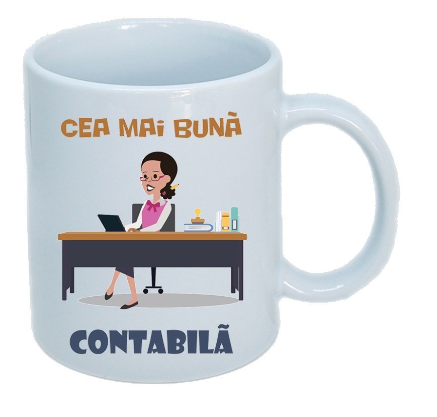 Cana alba personalizata " Cea mai buna contabila ", INOVATIX®. 330 ml