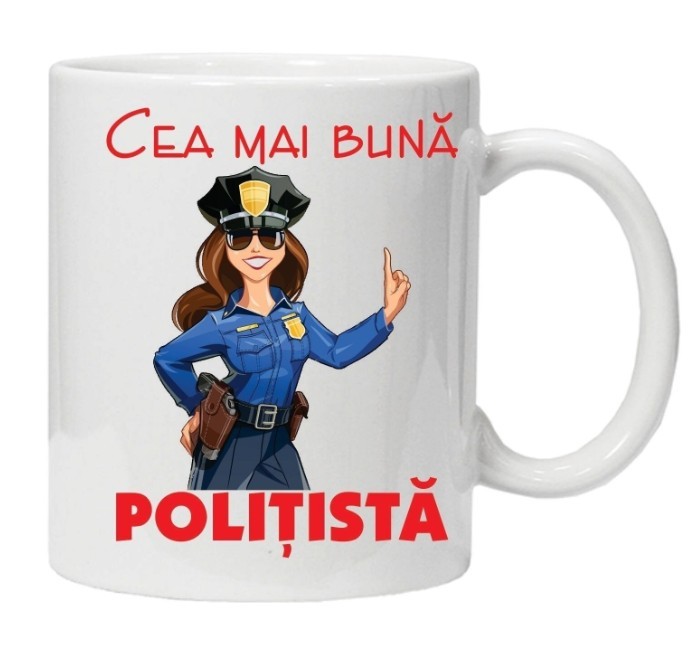 Cana alba personalizata "cea mai buna politista", INOVATIX®. 330ml