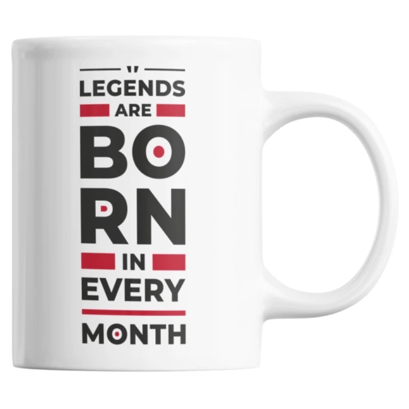 Cana alba personalizata "Legendele se nasc in fiecare luna!", INOVATIX®. 330ml