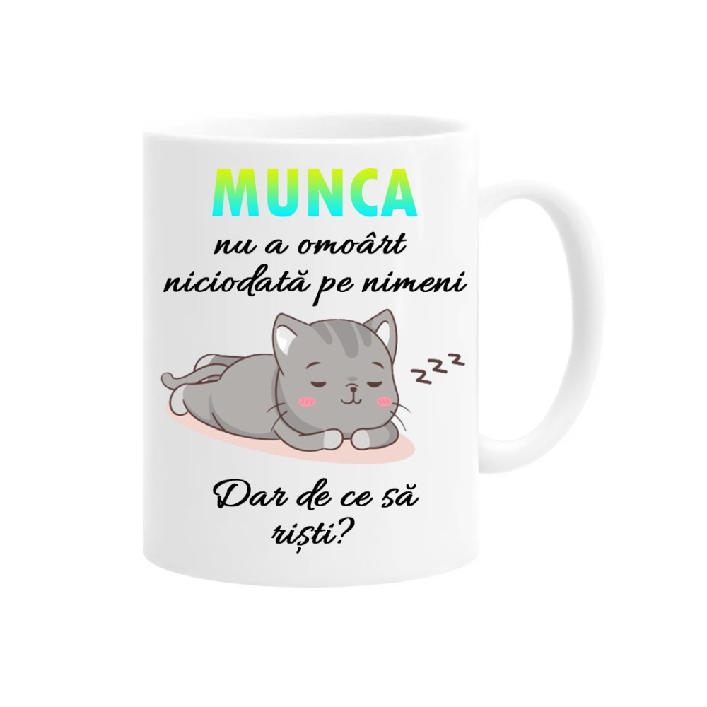 Cana alba personalizata munca nu a omorat niciodata pe nimeni dar de ce sa risti, INOVATIX®. 330ml