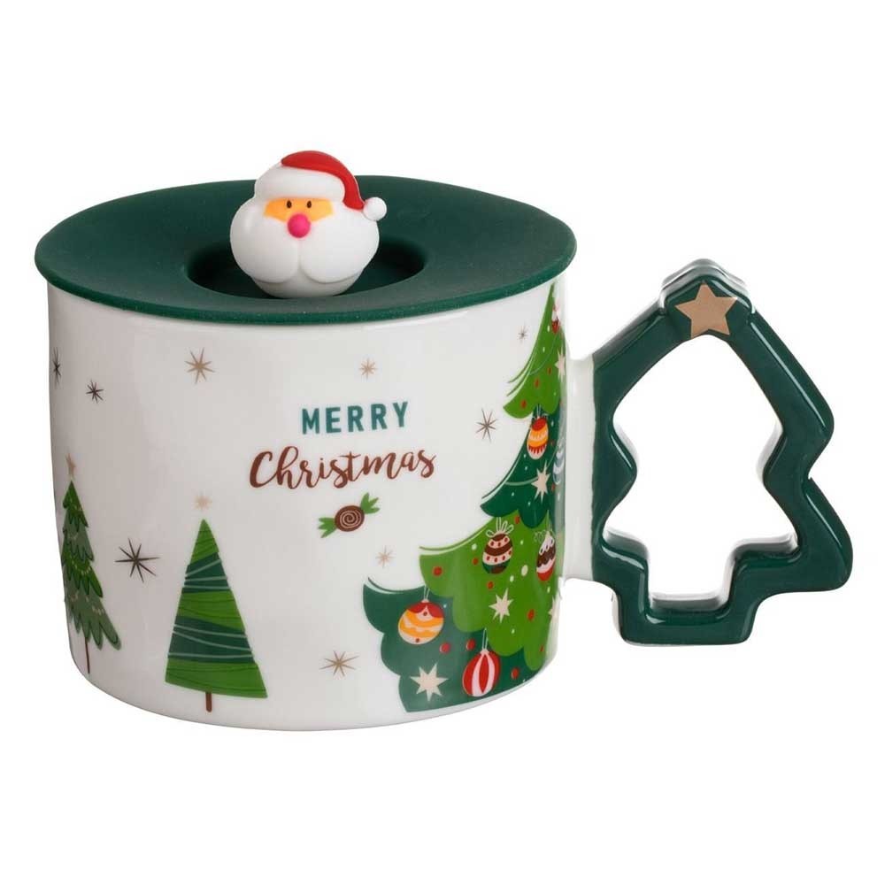 Cana Craciun cu maner bradut si capac silicon cu Mos Craciun, 350 ml