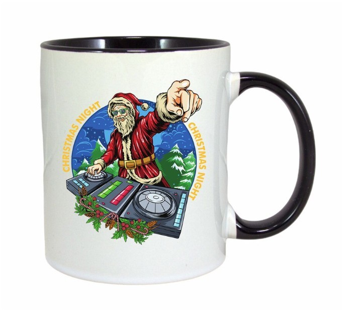 Cana maner negru personalizata Christmas Party DJ, INOVATIX®. 330ml