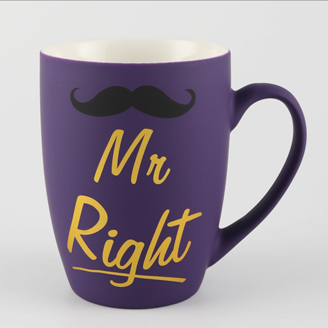 Cana mata din ceramica Pufo Mr Right, pentru cafea sau ceai, 360 ml, mov