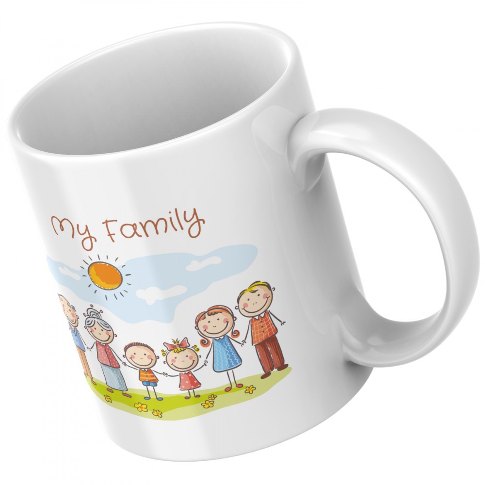 Cana termosensibila personalizata my family neagra la rece, afiseaza poza sau mesajul tau cand e calda. Cadoul perfect pentru cei dragi. 330ml, ceramica.