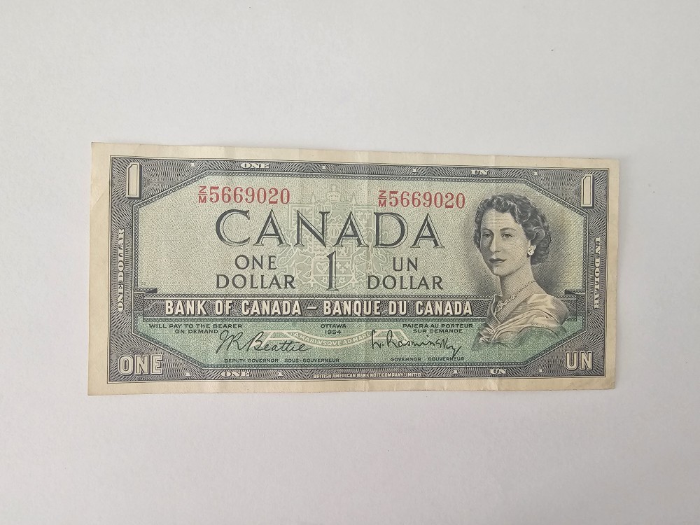 Canada1 dollar 1954,av.cont=15 lei,colet plata ramburs+plic