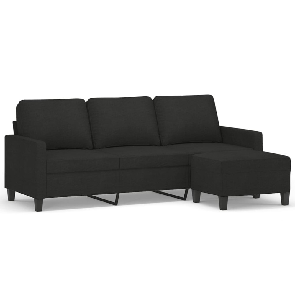 Canapea cu 3 locuri cu taburet, negru, 180 cm, material textil