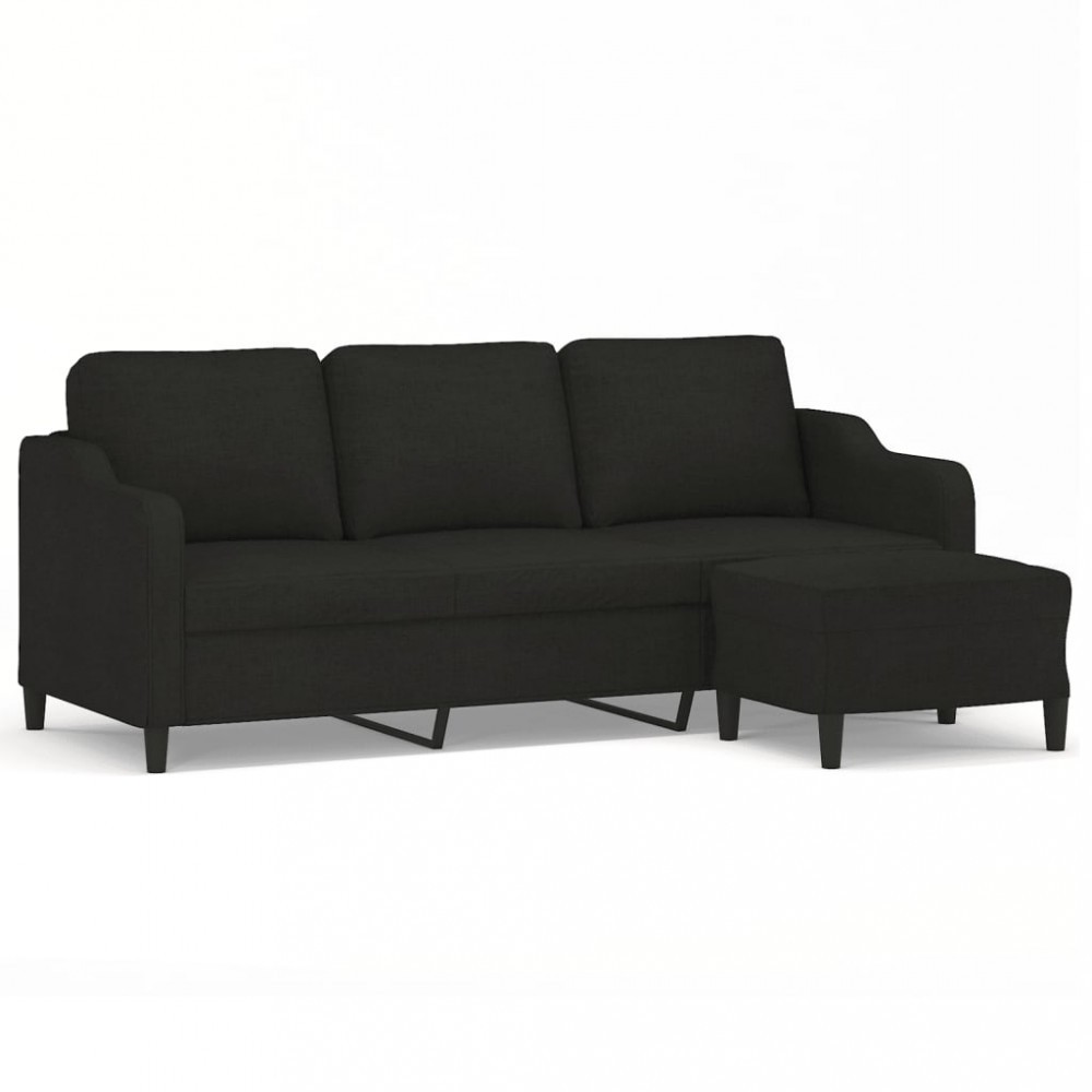 Canapea cu 3 locuri cu taburet, negru, 180 cm, material textil