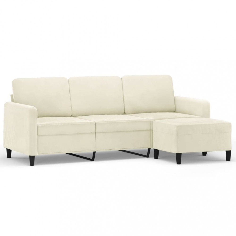 Canapea cu 3 locuri si taburet, crem, 180 cm, catifea