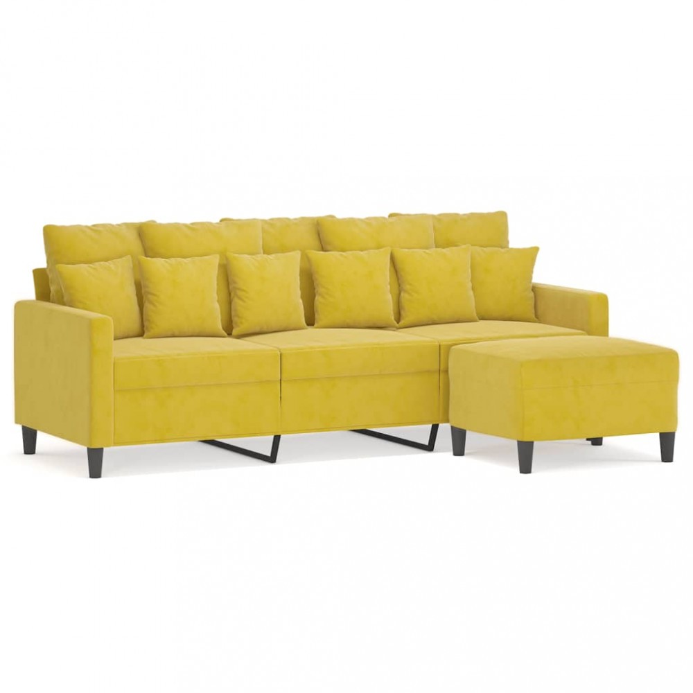 Canapea cu 3 locuri si taburet, galben, 180 cm, catifea