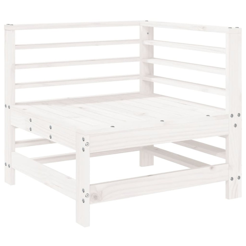Canapea de colt pentru gradina, alb, lemn masiv de pin