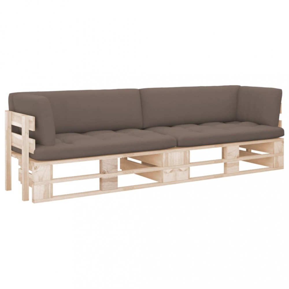 Canapea din paleti cu 2 locuri, cu perne, lemn pin tratat