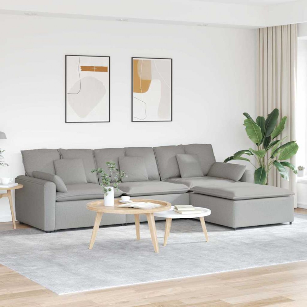 Canapea modulară cu taburet și perne, gri nor