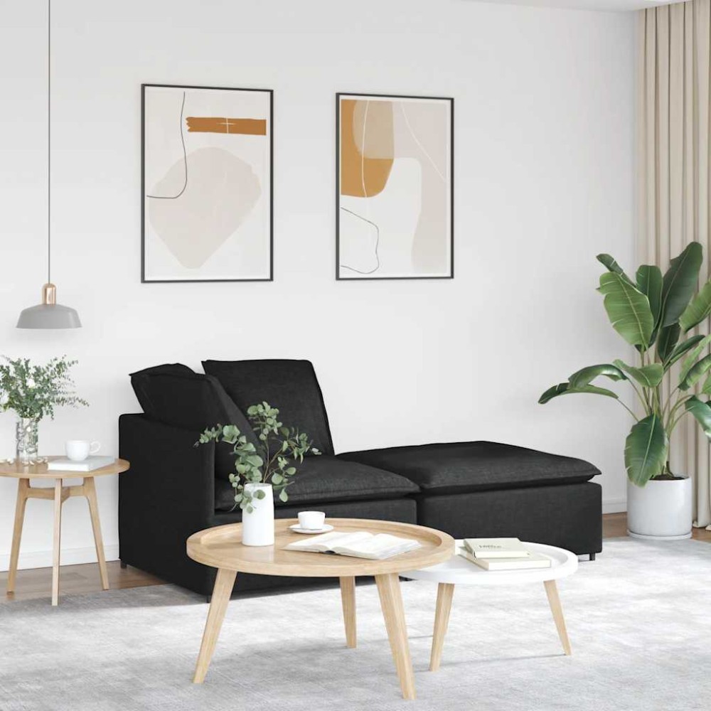 Canapea modulară cu taburet și perne, material textil, negru