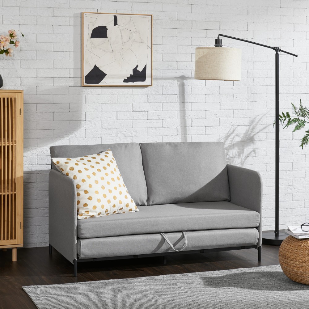 Aceasta canapea extensibila pentru 2 persoane, cu perne pentru spate, va fi accesoriul elegant al locuintei dvs. si totodata solutia urgenta, versatila, nu doar pentru odihna ci si pentru musafri, pentru care va fi un pat perfect.