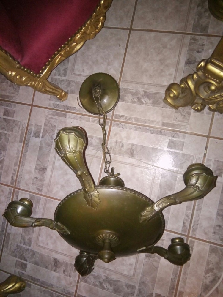 Candelabru foarte vechi in stilul Art Nouveau din alama masiva cu 5 brațe un model deosebit ,stare excelenta