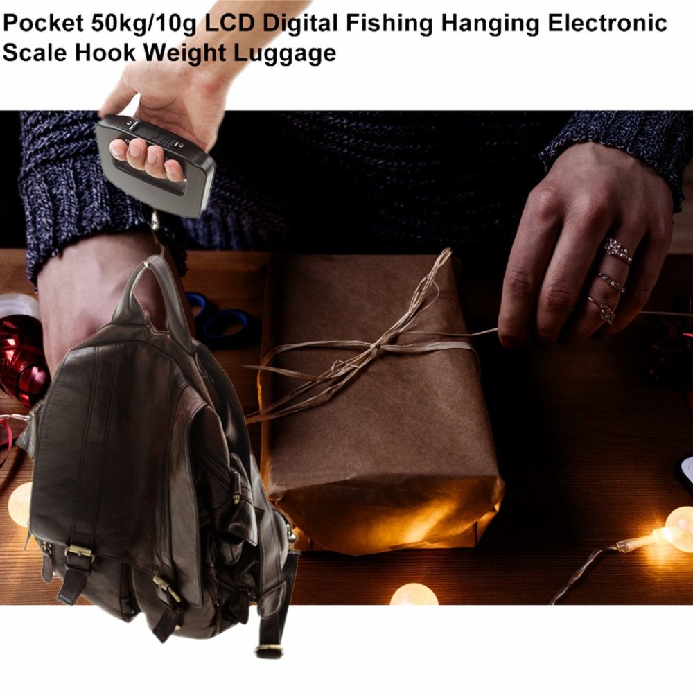 Cantar digital cu carlig pentru bagaje, 50kg, ecran LCD, negru
