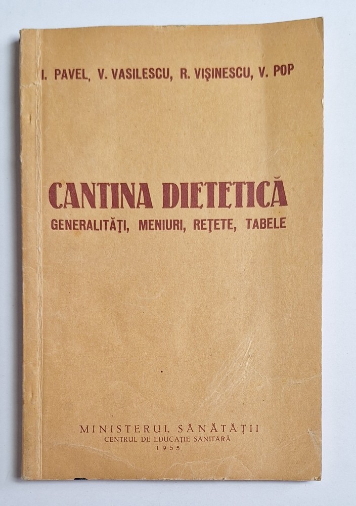Cantina dietetică. Generalități, meniuri, rețete – Aut. I. Pavel ș.a., Ed. Ministerul Sănătății, 1955