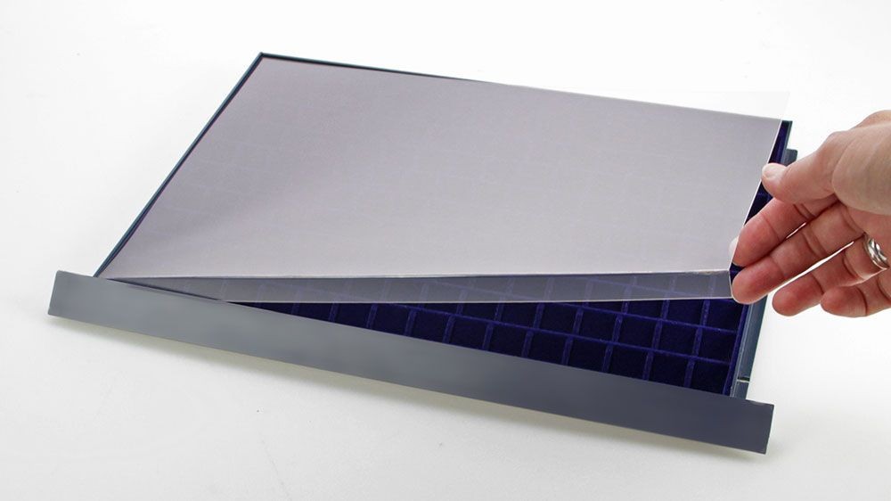 SAFE ALBUMS 6580 Extra protectie pentru colectia ta --------------------------------------------------------------------------------------- Capac transparent din sticla acrilica de 3 mm grosime. Latura mica inclinata la 90 grade pentru o stabilitate ferma. Ideal pentru sertarele Nova-Big dar si pentru cutia din lemn Frasin Antracit