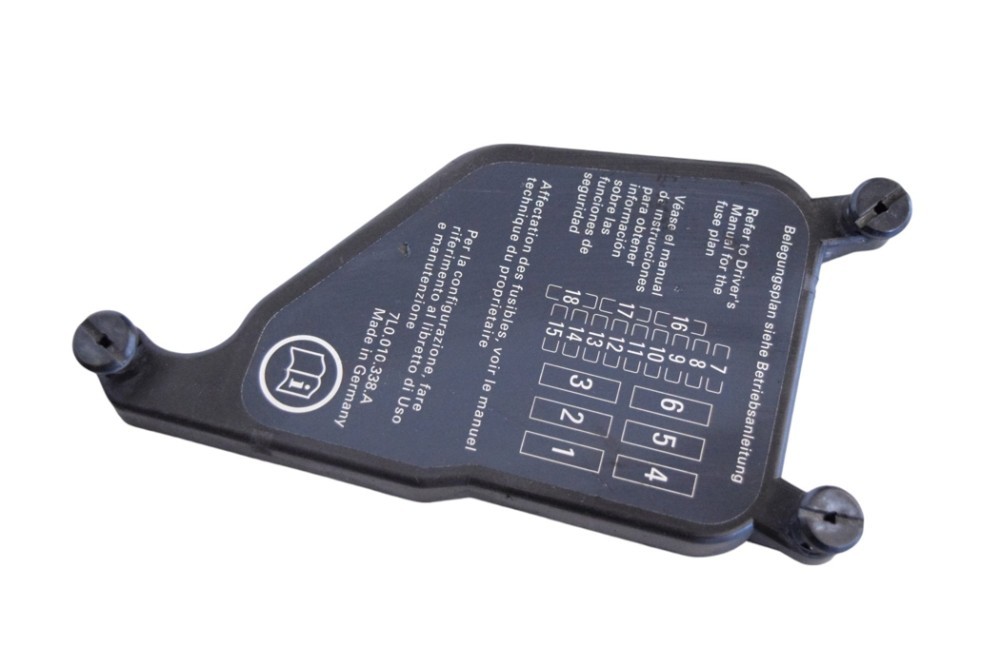 Capac panou de siguranțe PORSCHE CAYENNE 9PA . OEM: 7L0937576A . Aceasta este o piesă originală de la producător, asigurând calitatea și compatibilitatea cu vehiculul dumneavoastră. . Expediem în siguranță din depozitele noastre din Europa Centrală și de Nord, folosind soluții logistice de încredere. Suntem cel mai mare depozit de piese auto din dezmembrări din Europa de Nord, oferind o gamă largă de piese second-hand precum motoare, baterii pentru vehicule electrice, cutii de viteze etc. Gama noastră include piese pentru BMW, Mercedes-Benz, Audi, VW, Seat, Toyota, Lexus, Tesla, Nissan, Peugeot, Citroen, Renault, Land Rover, Jaguar și alte mărci auto. Oferim garanție pentru piese originale și politică de retur. Când ne sunați, vă explicăm condițiile de garanție pentru fiecare caz în parte și organizăm livrarea folosind logistică modernă. Piesele uzate sunt acoperite de garanție.