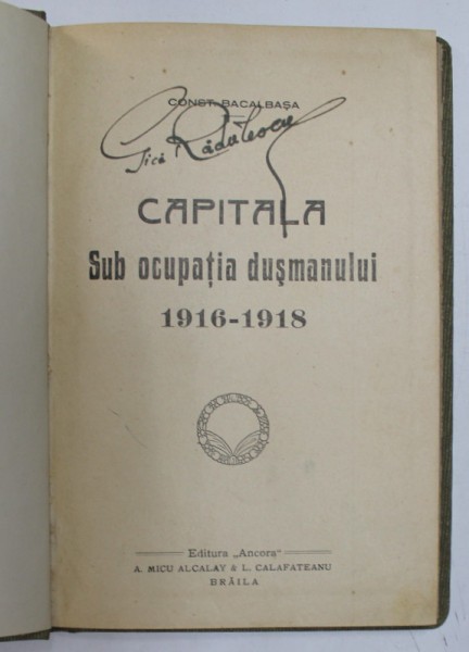 CAPITALA SUB OCUPATIA DUSMANULUI 1916-1918 de C. BACALBASA, BUC. 1921