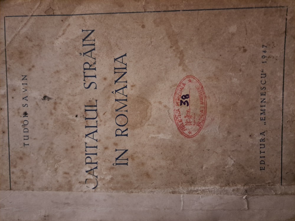 Capitalul străin în Romania- Tudor Savin, 1947, 174 de pagini.
