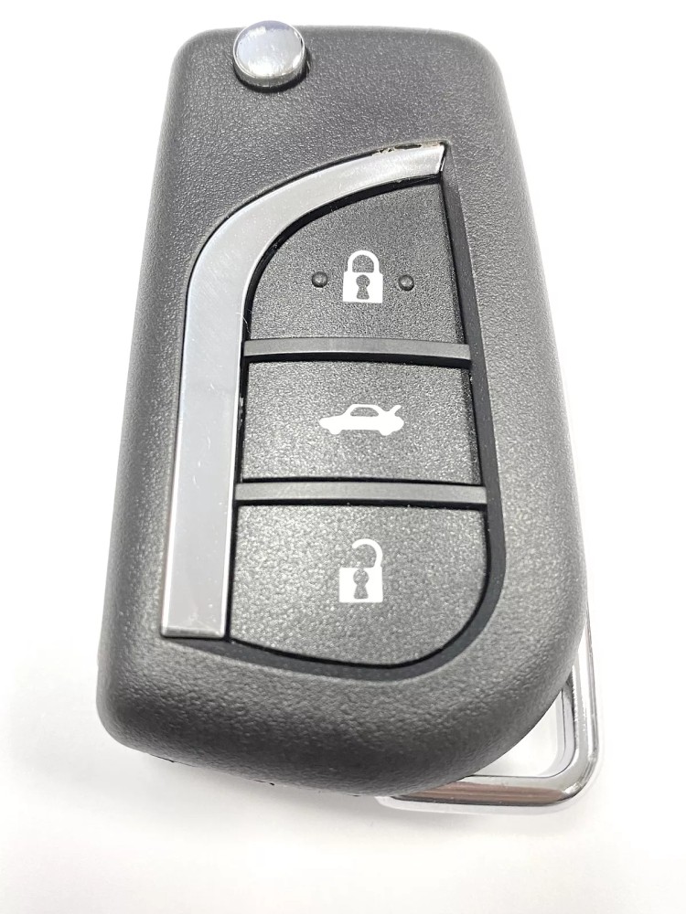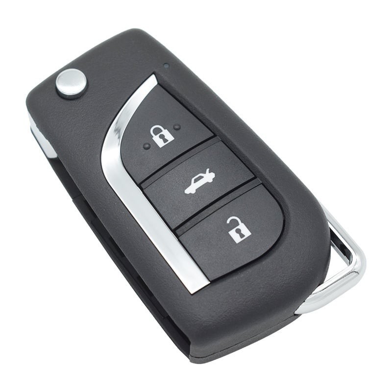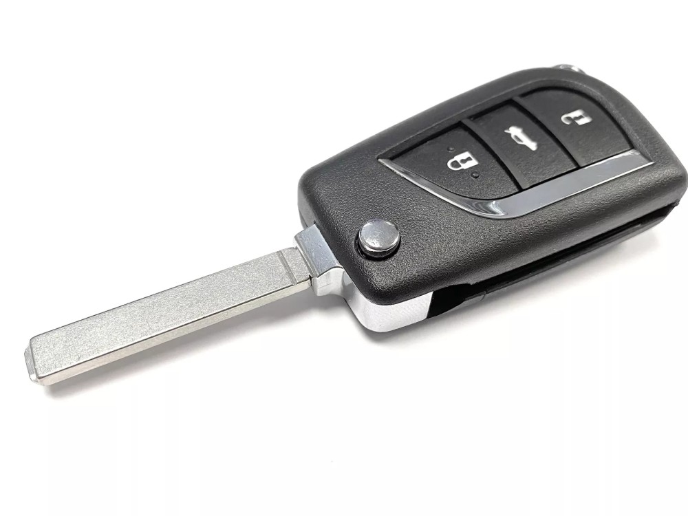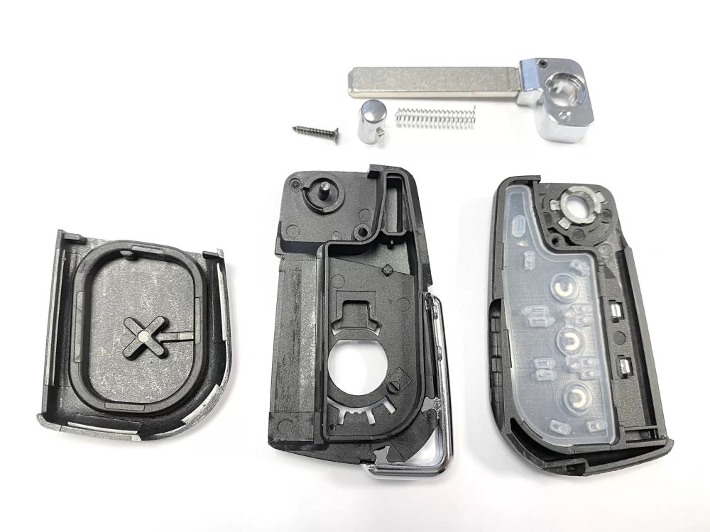 Carcasa de schimb tip briceag cu 3 butoane pentru cheie auto Toyota Prius. Este ideala pentru repararea unei carcase vechi sau a unui mecanism de briceag defect. Compatibila cu telecomenzile Toyota ce utilizeaza lama tip VA2 si circuit intern detasabil.