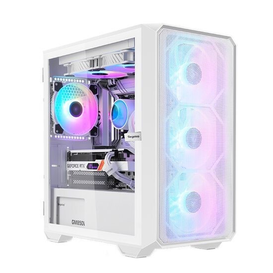Carcasa Segotep Alpha alba, SECC Steel ATX Mini Tower, fara sursa (tip ATX, montata jos), power cover, filtre de praf pentru tavan si sursa, interior vopsit alb, 2x3.5” (intern) sau 1x 3.5” (intern) si 1x 2.5” (intern), 3x2.5” (intern), fata – 3x 120mm aRGB LED fans (incluse), spate – 1x 120mm aRGB LED fan (inclus), tavan – 2x 120/140mm fans (optional, pozitie ajustabila), power cover – 2x 120mm fans (optional), design premium cu panou lateral dinsticla securizata cu balamale si inchidere magnetica, 1x USB 3.0, 2x USB 2.0, HD Audio, microATX / Mini-ITX, sloturi expansiune: x4, inaltime maxima cooler procesor: 160mm, lungime maxima placa video: 330mm, suport radiatoare water cooling: tavan – 240mm, fata – 240/280mm, dimensiuni: 400 x 210 x 425mm
