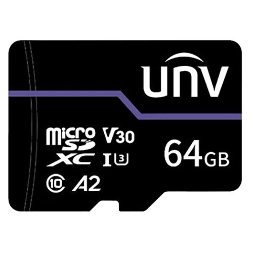 Cardul de memorie micro SD, TF-64G-T din seria purple card de la UNV este destinat memorarii imaginilor captate de la camerele de supraveghere, telefoane, drone, etc. Avantaje: viteze mari de scriere si citire, health monitoring, utilizarea la mai multe tipuri de dispozitive.