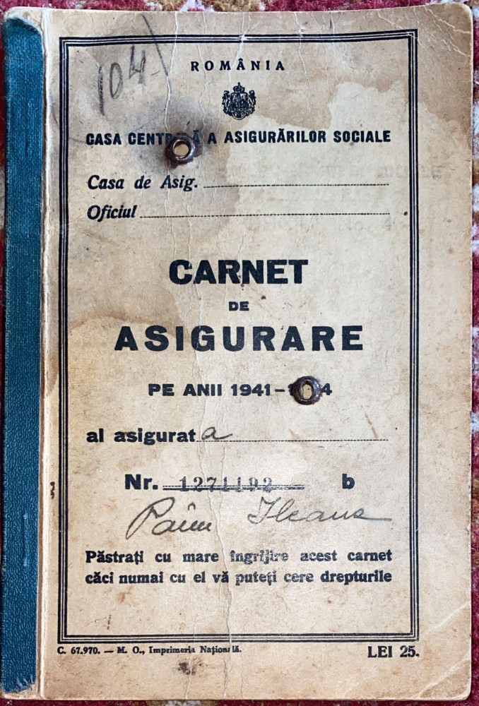 CARNET DE ASIGURARE per REGALIST(1941-1944)/ STARE BUNA,43 PAGINI, POZE..