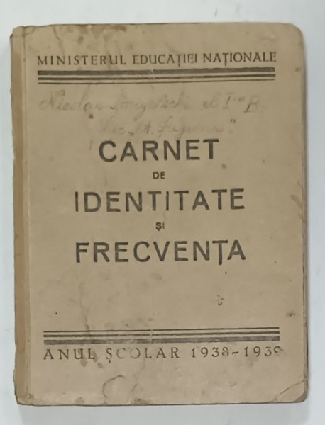 CARNET DE IDENTITATE SI FRECVENTA , LICEUL ' ANDREI SAGUNA ' , BRASOV , ANUL SCOLAR 1938 - 1939