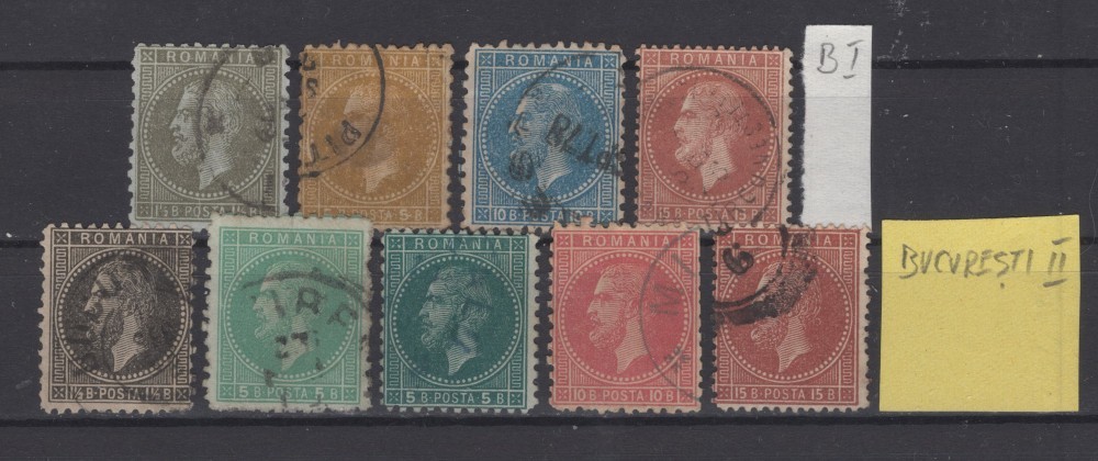 Carol I Bucuresti I si II 1876-1879 - 9 v. stampilate. Stare buna.