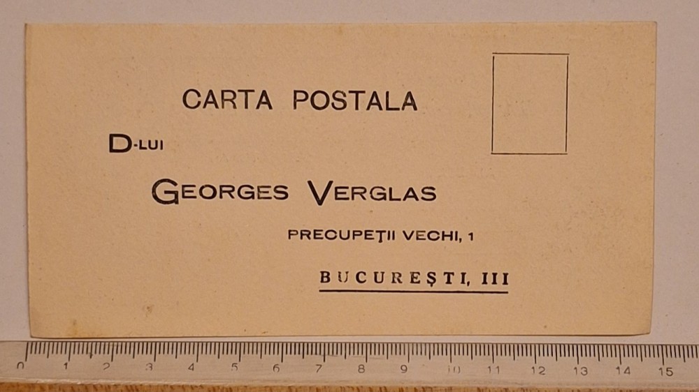 Cartă poștală comercială interbelică – București Precupeții Vechi – Georges Verglas