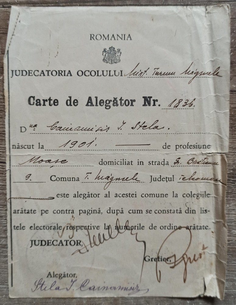 Carte de alegator, Judecatoria Ocolului Turnu Magurele, prima jum. a sec. XX