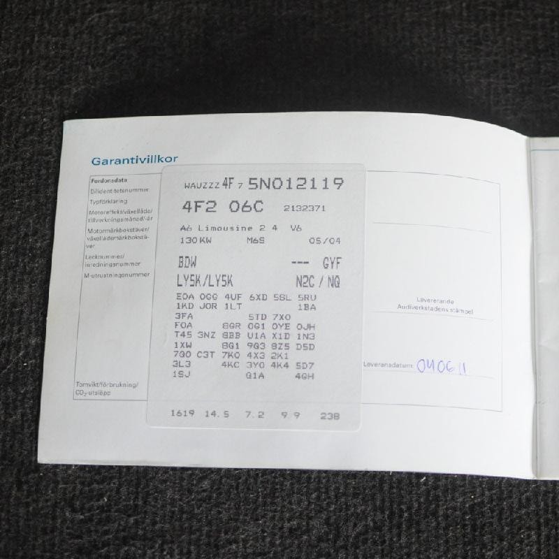 Carte de service AUDI A6 4F2, C6 2006 | 1876017
