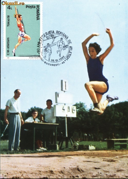 Carte maxima atletism - saritura in lungime.Stampilat special Bucuresti la 05.12.1992.stare conform foto.